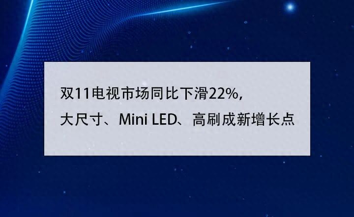 持续近一个月的双11促销活动已经结束,双11的促销返场活动也基本接近尾声,各大行业的表现来说也是可圈可点。作为经济晴雨表的家电行业虽然体量占比Top1,但是总体感觉依然是不如往年。电视行业作为家庭娱乐工具,在今年的双11也表现低迷。
