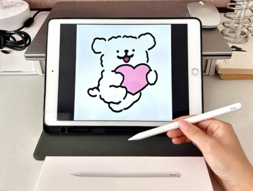 这款电容笔采用即开即用的方式,无需复杂设置,对新手用户十分友好,操作直观便捷。而且整支笔重量仅约13.6克,配合哑光表面处理,握持手感舒适且不易打滑。并且它的书写表现还不错,整体较为顺滑,只要书写速度适中,基本不会出现明显延迟或连笔问题,还搭载了防误触技术,不仅支持全屏防误触,也兼容分屏模式,即使手掌自然搭在屏幕上进行书写或绘画,也不会产生误操作。此外,它的充电方面也兼顾实用性与便利性,既可通过Type-C接口直充,也支持磁吸吸附于iPad进行无线充电,还有9小时的续航,足以满足日常学习、办公及轻度创作需求。