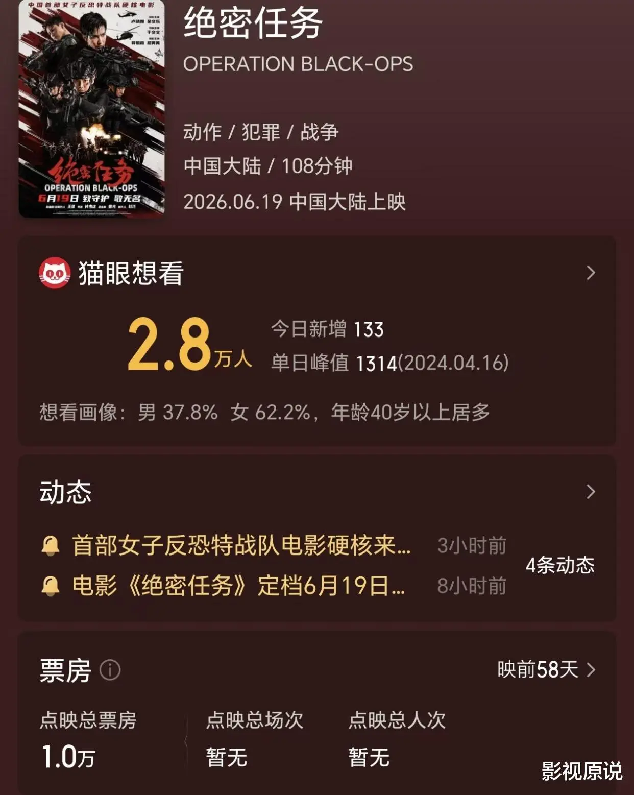 在这种情况下,《绝密任务》本应得到观众们的集体期待,上映后创造可观的票房成绩。